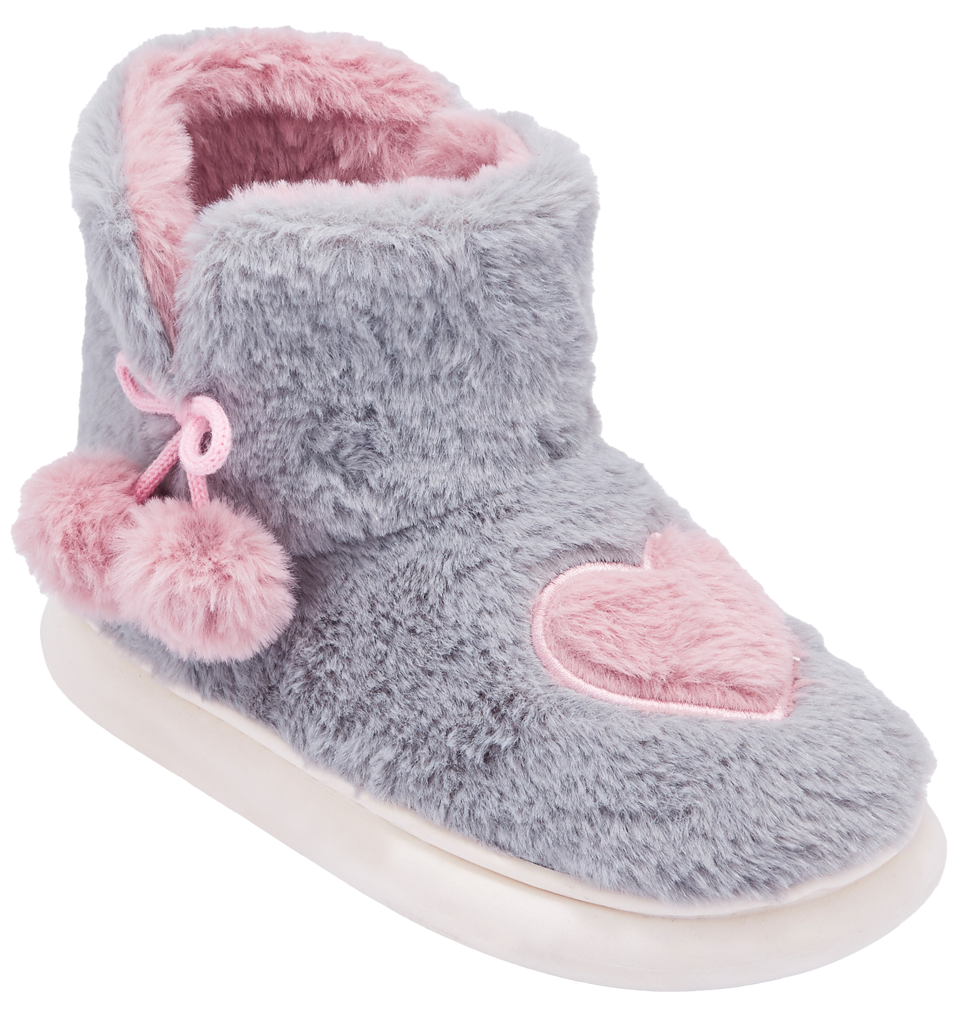 Χειμωνιάτικα Κοριτσίστικα Παντοφλάκια Κλειστού Τύπου B-Soft 1200 Γκρι/Ροζ