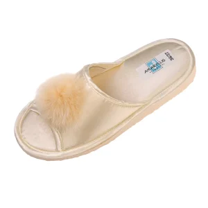 Γυναικεία Παντόφλα Νυφική Σατέν Με Φουντάκι Ελληνική 71112-2 Ιβουάρ
