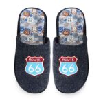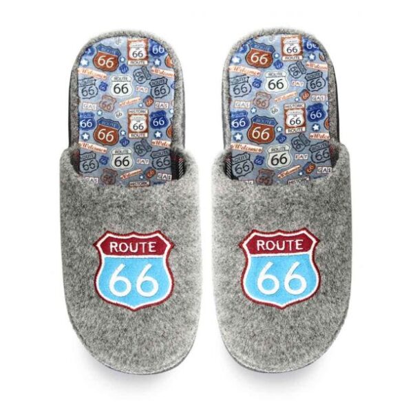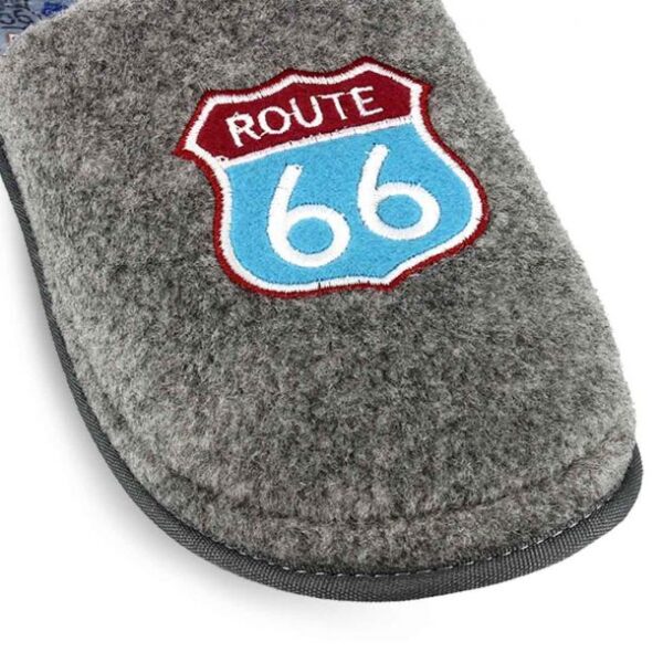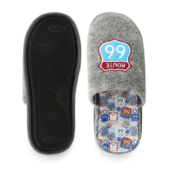 Αγορίστικες χειμωνιάτικες ανατομικές παντόφλες Parex με κεντημένο σχέδιο “Route 66” στο πάνω μέρος και στον πάτο . Διαθέτουν αντιολισθητική σόλα και πλένονται στο πλυντήριο στους 30°C.