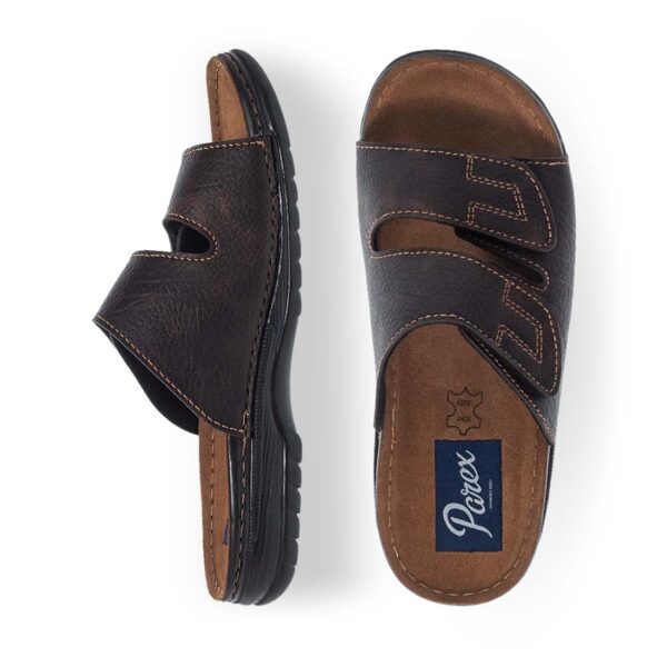 Ανδρικά Σανδάλια Parex για άνετο περπάτημα. Διαθέτουν δερμάτινο , μαλακό πάτο και δύο ρυθμιζόμενα αυτοκόλλητα λουράκια για καλύτερη εφαρμογή. Ιδανικά για το σπίτι και για την έξοδο σας.