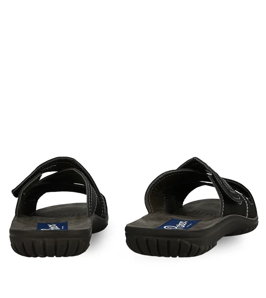 Ανδρικές Ανατομικές Παντόφλες Eξόδου Comfort. Κατασκευασμένες από άριστης ποιότητας συνθετικό δέρμα. Επίσης διαθέτουν αυτοκόλλητο velcro για καλύτερη εφαρμογή στο κουντεπιέ. Ποιότητα Parex για άνετο και σταθερό βάδισμα.