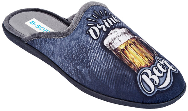 Χειμωνιάτικες αντρικές παντόφλες από την B-Soft. Διαθέτουν εύκαμπτη σόλα και ζεστή εσωτερική επένδυση. Πολύ ελαφριές και άνετες. Μια παγωμένη μπύρα στο πάνω μέρος της παντόφλας σας θυμίζει ότι το καλοκαιράκι θα ξανάρθει.