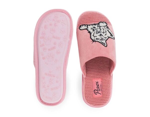 Γυναικείες χειμωνιάτικες  παντόφλες Parex. Ο ζεστός και άνετος πάτος σε συνδυασμό με την σόλα που δεν γλιστράει δίνουν ένα τέλειο αποτέλεσμα στην αίσθηση του βαδίσματος μέσα στο σπίτι. Οι κάθετες ρίγες και το διακριτικό της Parex ξεχωρίζουν στο πάνω μέρος της παντόφλας.